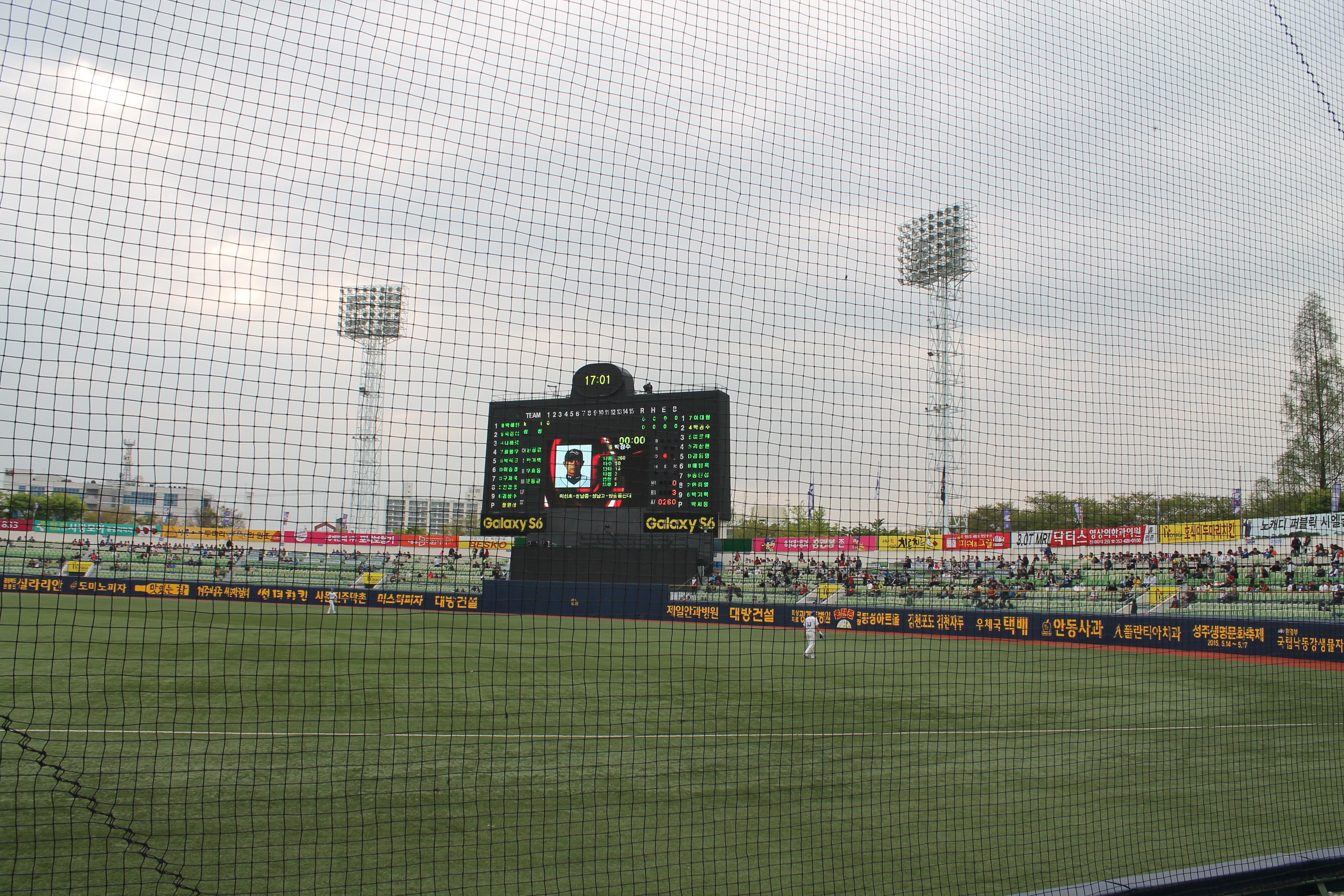 There was a rowdy cheering section of the stands complete with Korean drums and lots of organized cheers, but they were on the opposite side of the stadium from our seats, so we were able to enjoy them from a distance. The stadium isn’t all that large though – in fact, it’s similar in size to the minor league stadiums I went to in North Carolina.