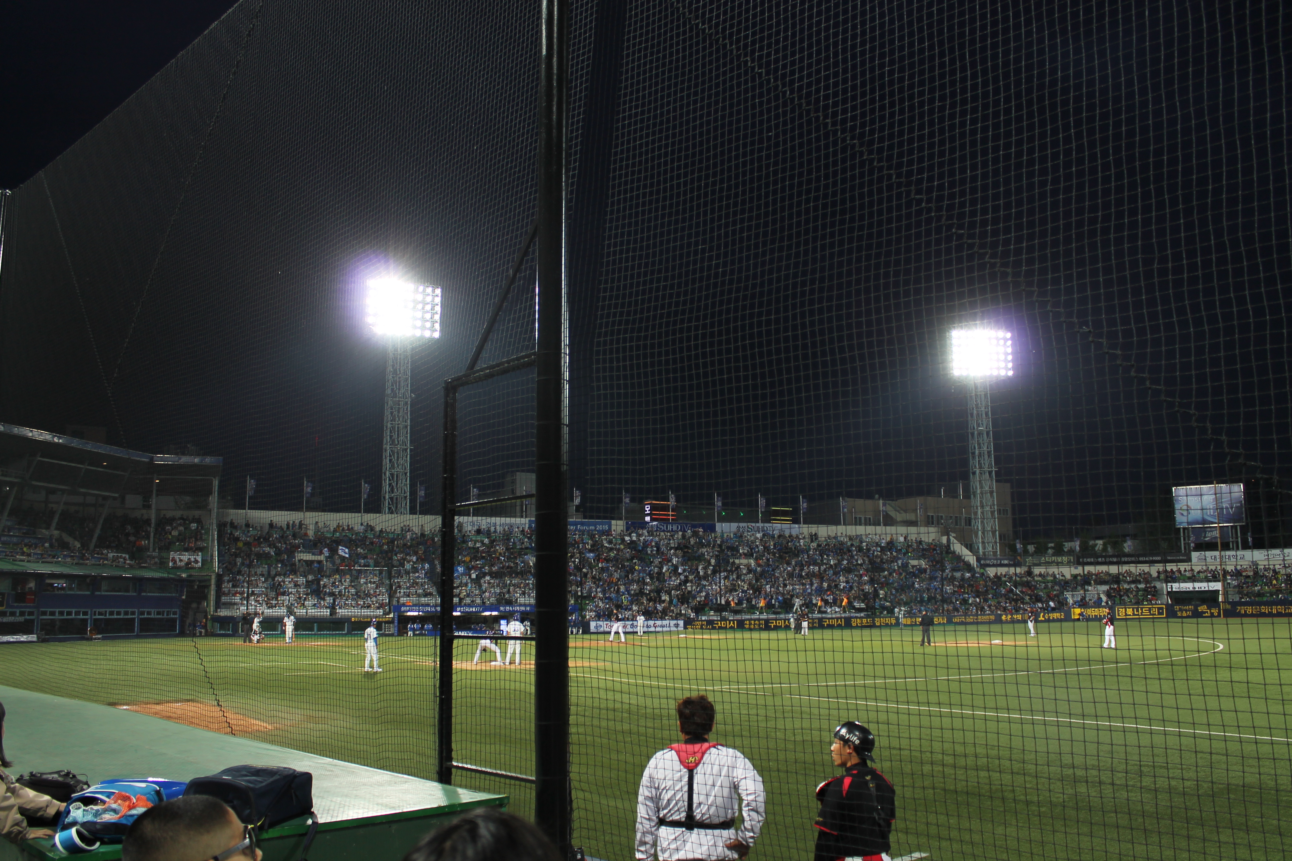 Another fun fact about baseball in Korea is that there are cheerleaders who dance around in front of the big cheering section. Maybe this exists in other places as well, but in the US, cheerleaders are typically only present at football and basketball games and it would be strange to see them at a baseball or soccer game.