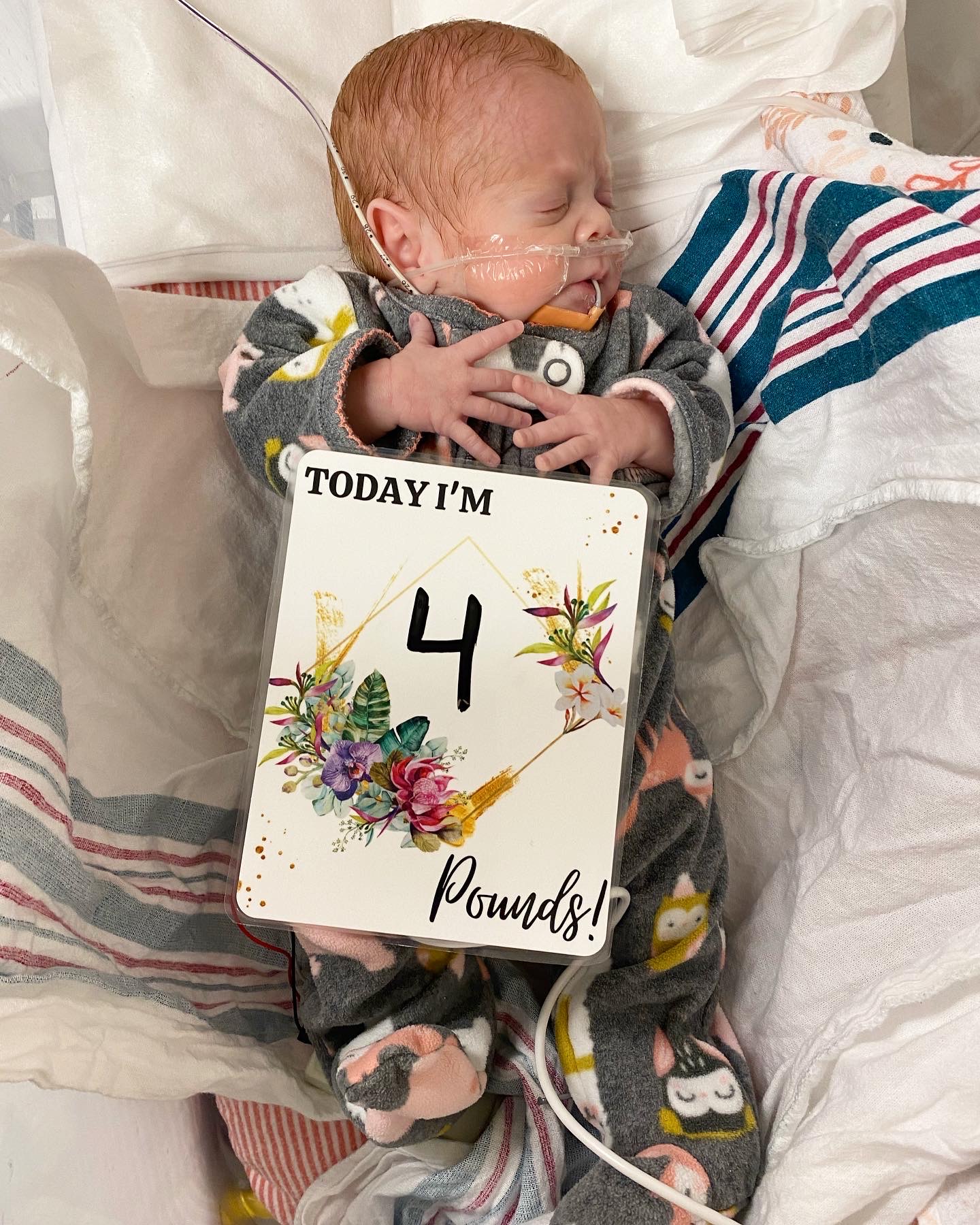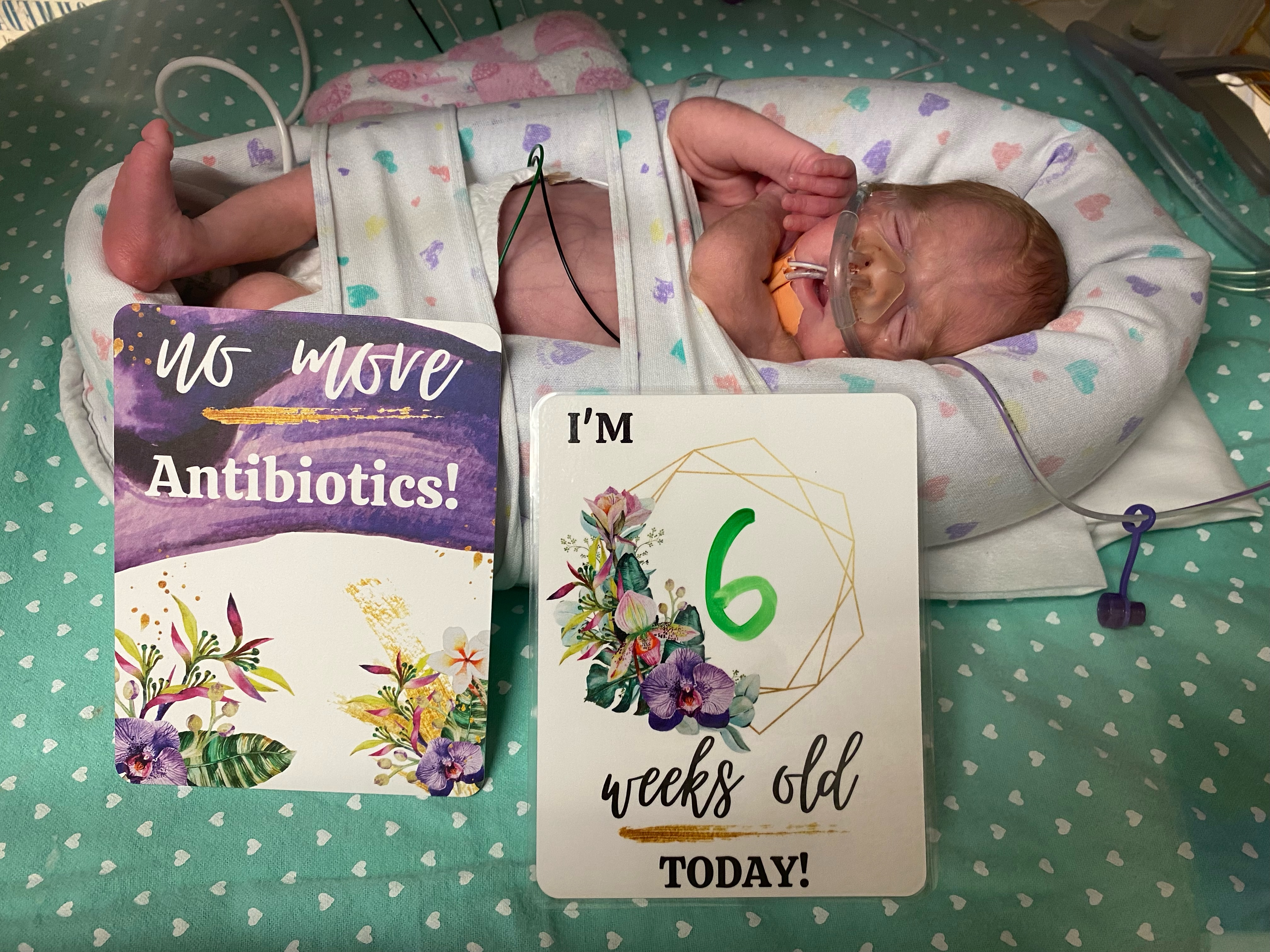But today you are 100 days old. You weigh 6 lbs 10 oz. You have no long-term medical issues that we are aware of. You are working on bottle and breastfeeding. Right now you are able to take about 40% of your feedings this way. Once you reach 100% for 48 hours, you can come home.