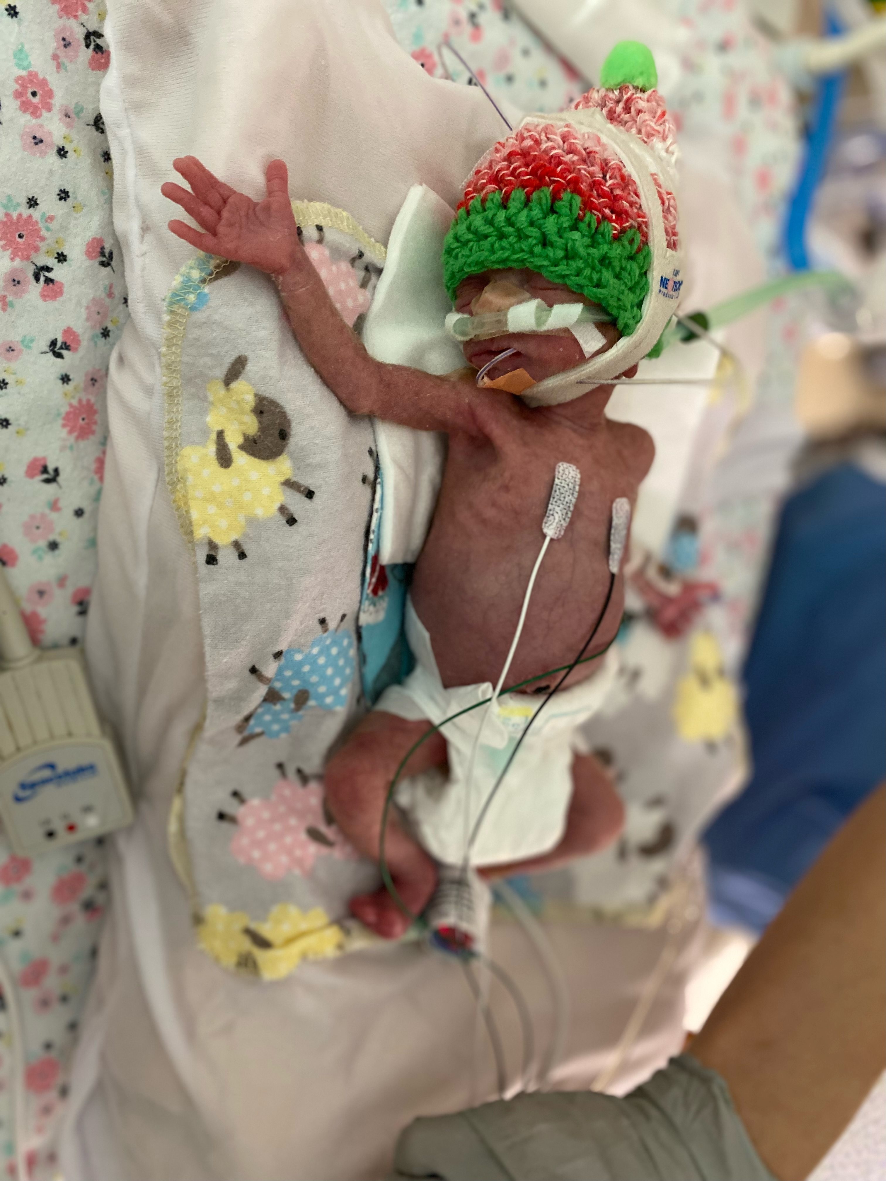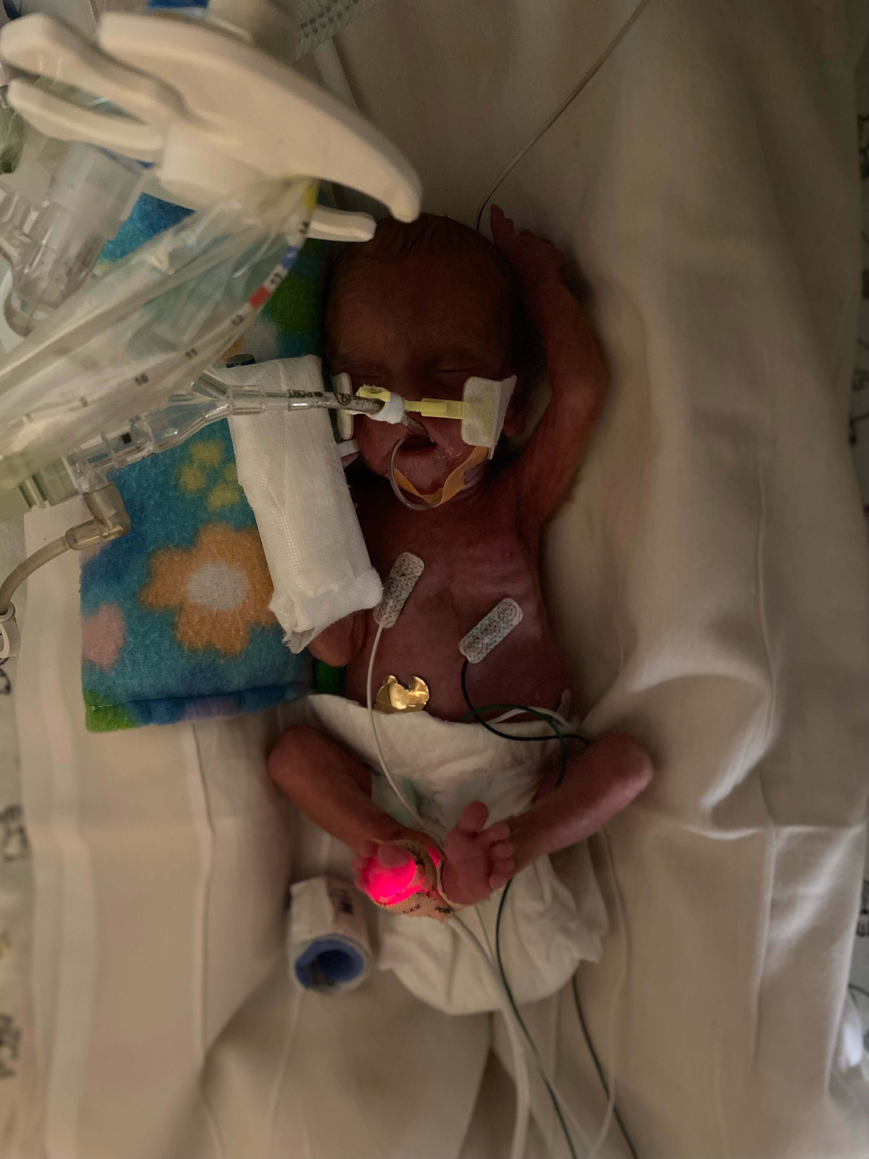 You are Lucy Emmanuelle Dunn. Lucy. “Light.” Emmanuelle. “God is with us.” You were born on December 14, 2021 at 25 weeks and 5 days. You weighed 1 lb. 10 oz. and they told us you had a 70% chance of survival. Your odds were better than average, but far from the 99.5% rate of a full-term baby.