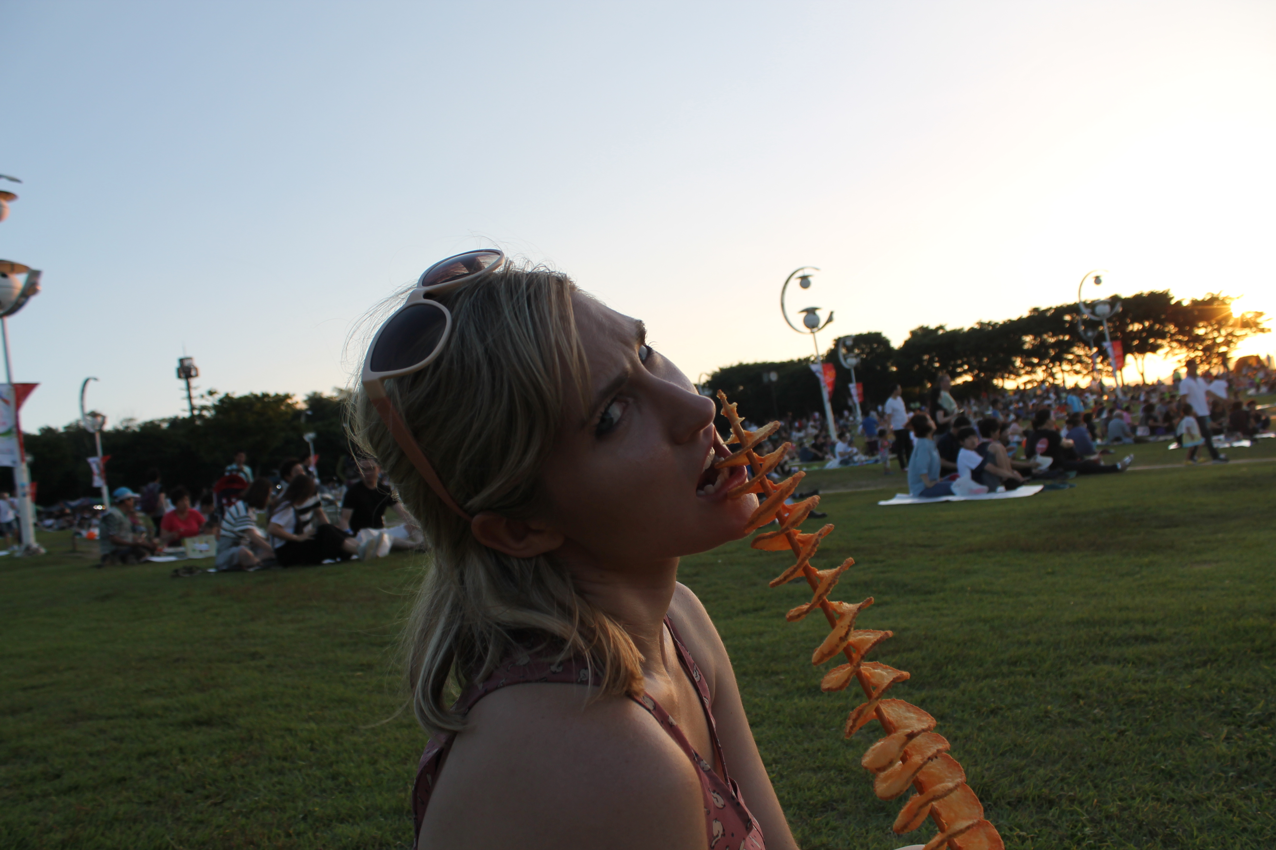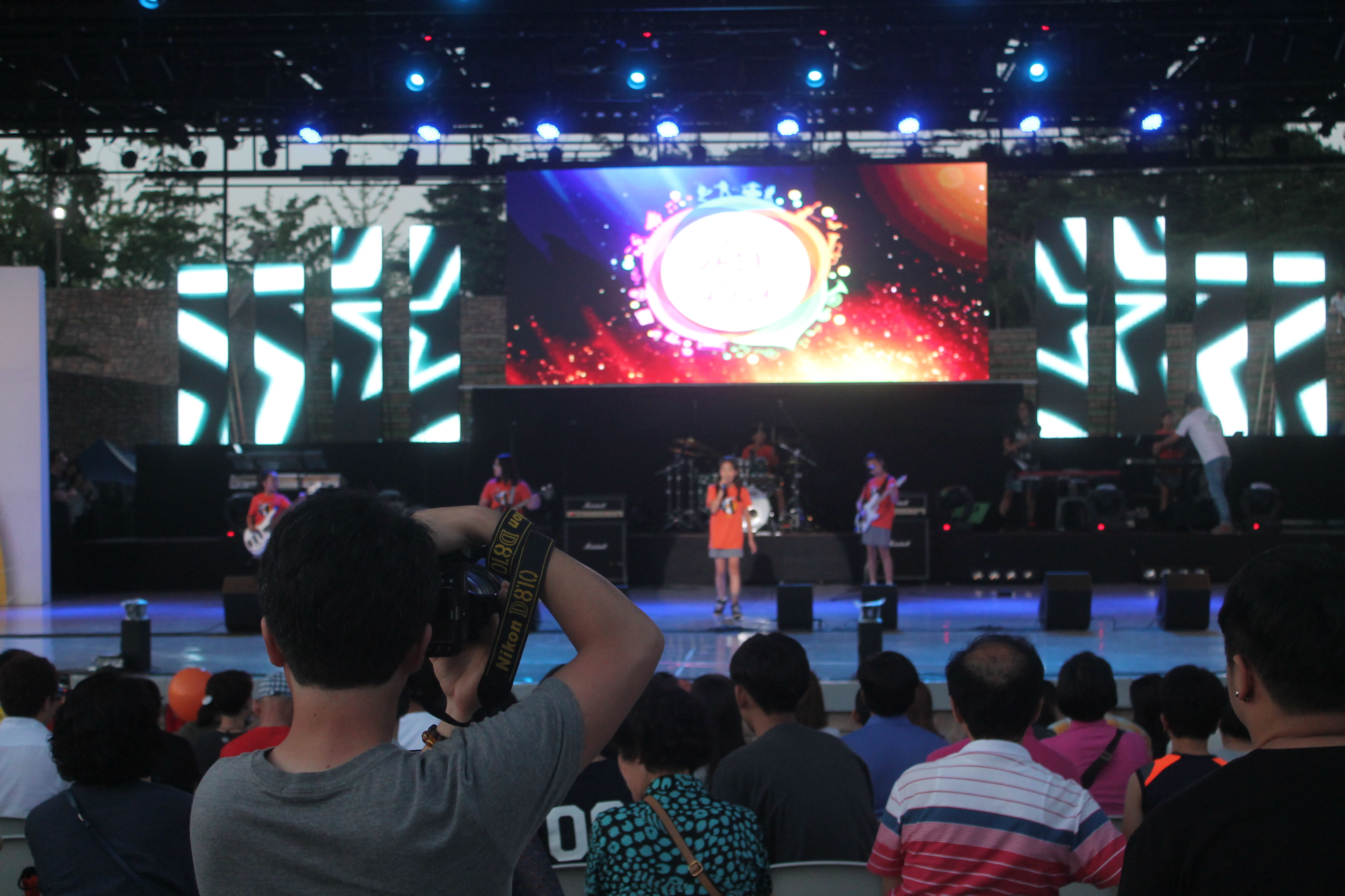 We watched a couple of performances as it started to get dark, including these girls who were pretty bad at dancing and later a band comprised of what looked like 6th grade girls plus one boy who was the drummer. I was much more impressed by them.